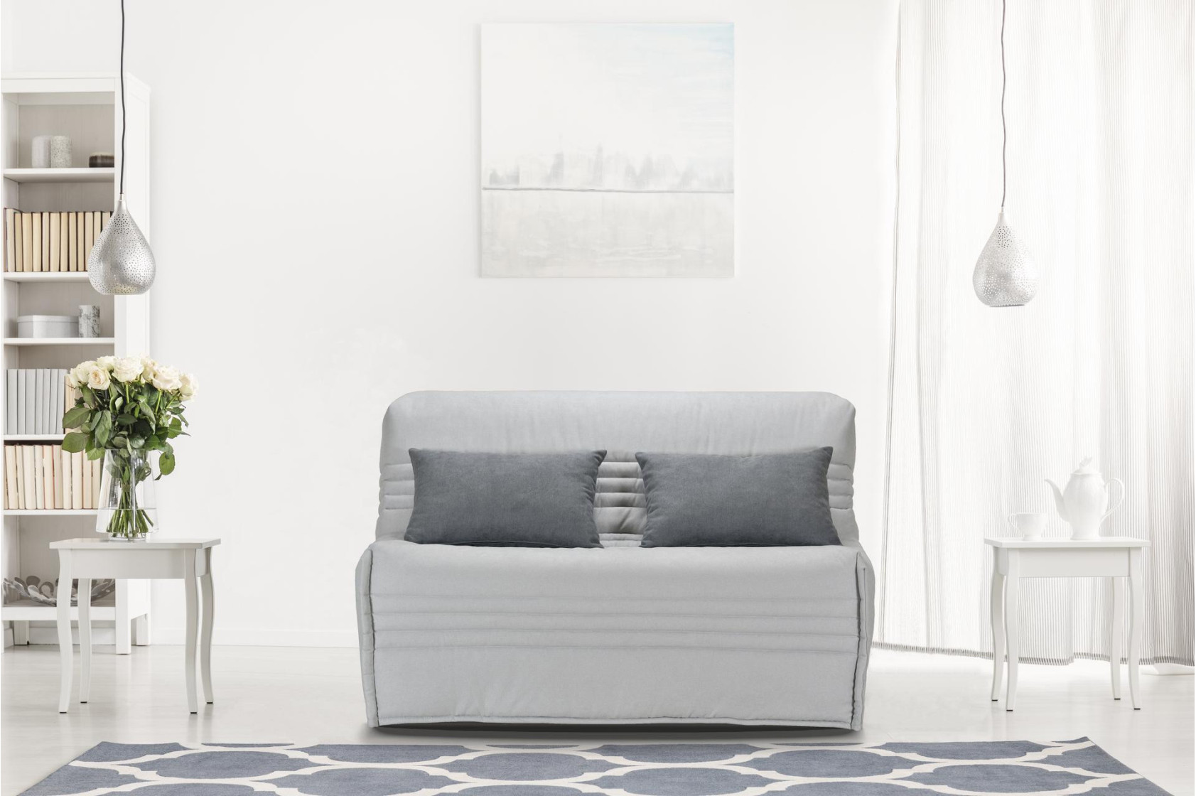Le canapé est également livré avec 2 coussins déco déhoussables, dont la housse est de la même catégorie de tissu que la couette.