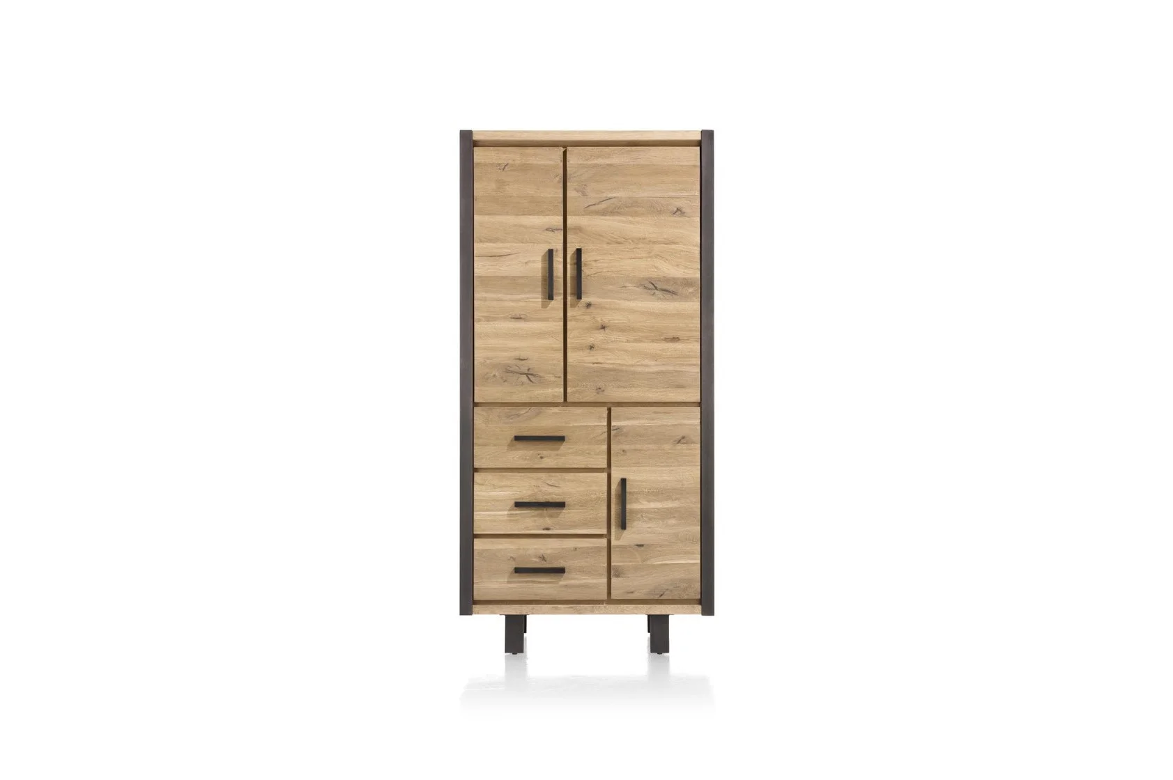 Structure chêne massif et MDF plaqué chêne, intérieur panneaux de particules avec mélamine.