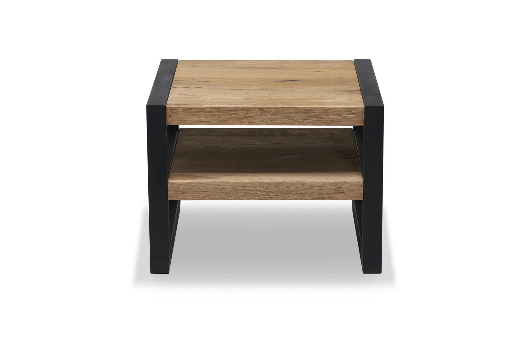 Acier vernis. Finition fumée, non traitée, chêne Railway brown et métal vernis noir.