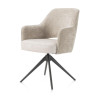 Minimaliste et raffinée, cette chaise pivotante avec accoudoirs n’en est pas moins confortable avec son dossier incurvé et son assise rembourrée. Son design moderne est inspiré des chaises tulipe avec une touche originale : son piètement étoile en métal noir lui apporte un style contemporain contrasté par la douceur de son revêtement bi-matière en tissu. Elle s’intègre aisément à tous les styles de séjour puisqu’elle est disponible en 3 coloris. Associez cette jolie chaise haut de gamme à une table de salle à manger en bois ou en céramique pour jouer sur les contrastes de matières et de textures. Sa fonction pivotante permet de sortir de table avec style et de changer de position sans se déplacer ! Elle trouvera également sa place dans la chambre ou le bureau pour travailler confortablement ou lire son livre préféré.