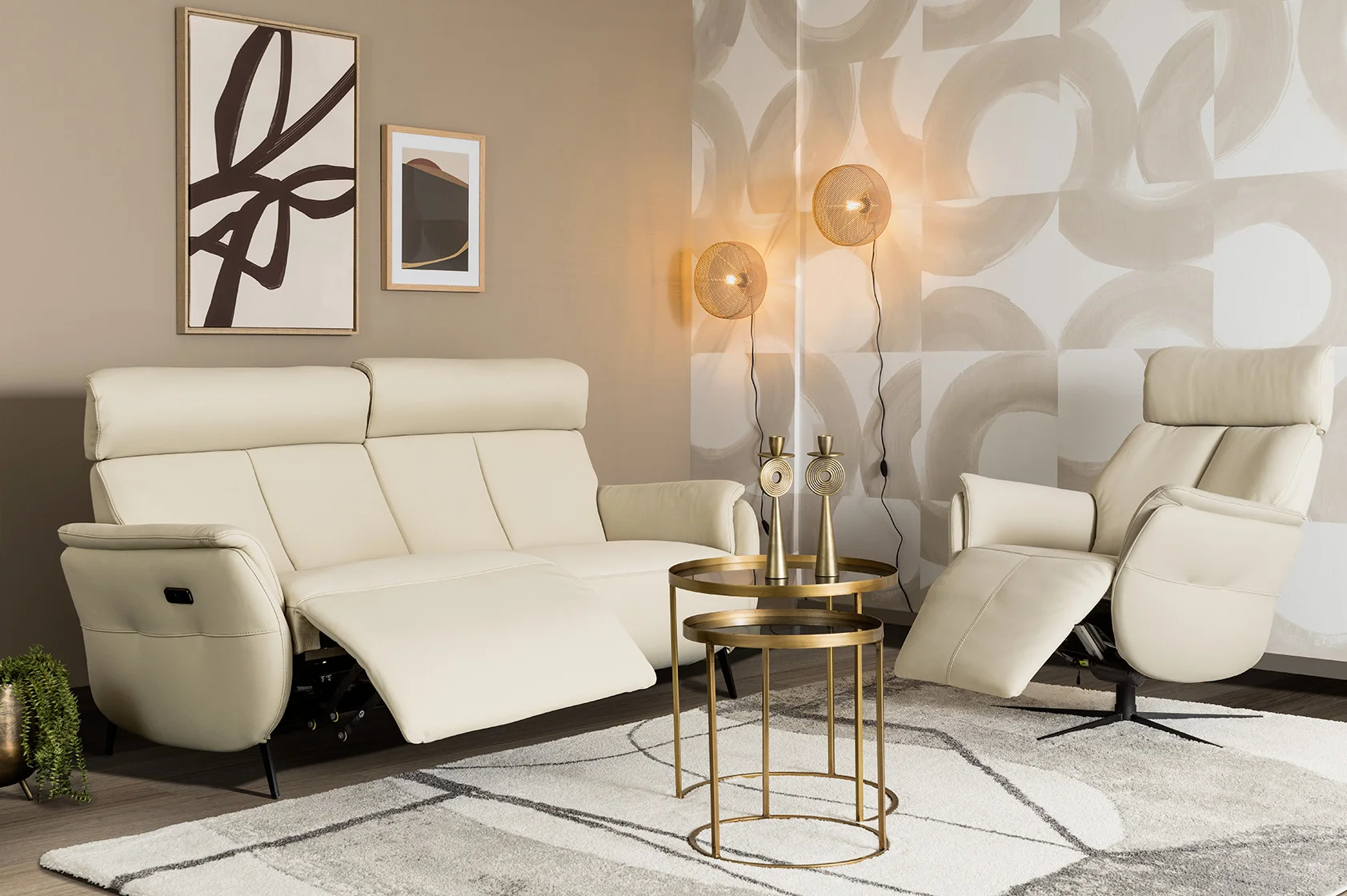 Faites passer le confort avant tout grâce à ce canapé 3 places de 185 cm de longueur. Doté d’une belle profondeur d’assise (85 cm), il a été conçu pour vous offrir un maximum de bien-être. Il possède également un système de relaxation électrique à 1 moteur par place assise qui vous permet d’incliner individuellement le dossier pour passer en position semi-allongée en un clin d’oeil. Autre avantage non négligeable, il est muni d’une têtière manuelle, réglable en hauteur et en inclinaison : à l’horizontale, elle apporte une touche design au canapé ; à la verticale, elle permet de maintenir le cou et la tête. Disponible en plusieurs dimensions, ainsi qu’en version fixe, c’est un canapé modulable qui s’adapte à votre espace. Personnalisable en cuir ou en tissu, choisissez le coloris qui s’intègrera au mieux à votre décoration d’intérieur et à vos envies. Fabriqué en Europe, c’est un canapé relax confortable et résistant dont vous ne pourrez bientôt plus vous passer !