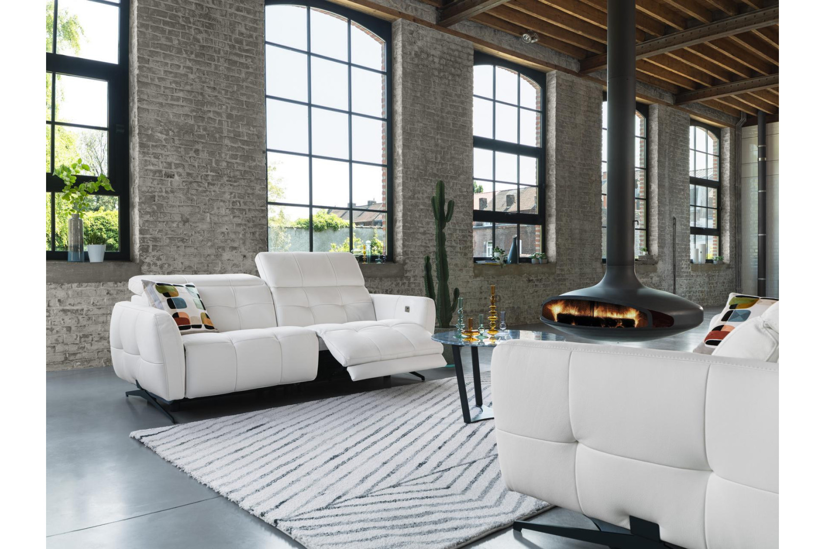 Vous cherchez un canapé design et fonctionnel ? Ce canapé confortable offre des places assises pour vous permettre de passer de bons moments en famille ou entre amis. Source de détente et de convivialité au quotidien, il offre une large profondeur d’assise. Il dispose également de deux accoudoirs légèrement inclinés vers l’extérieur pour vous offrir un maximum de confort en position assise. Equipé d’un moteurs par place assise, ce canapé relax vous offre également la possibilité d’incliner à la fois le dossier et le repose-jambes pour passer en position inclinée et profiter d’un confort sur-mesure. Chacun est alors libre d’adapter sa position pour profiter d’un moment de détente unique : quelques minutes de sieste, une pause lecture, un moment devant la télé… Son petit plus : il est doté de têtières relevables manuelles qui respectent le confort de votre nuque, vous pouvez choisir en option les têtières en version électriques . Optez pour ce canapé en cuir solide et robuste qui vous accompagnera de nombreuses années. Fabriqué en Europe, il est entièrement personnalisable : également disponible en tissu et en plusieurs coloris, il existe aussi en version fixe : un éventail de possibilités auxquelles vous aurez la chance et le plaisir d’avoir accès !
