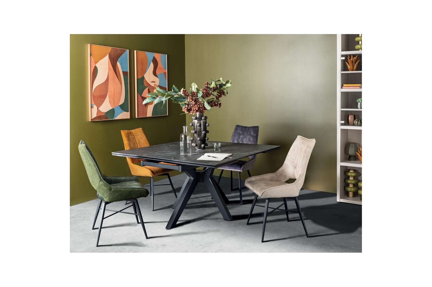 Côté design, cette table de salle à manger extensible se conforme entièrement à vos exigences. Son superbe piétement en métal noir soutient un plateau en céramique effet brossé, disponible en trois coloris différents