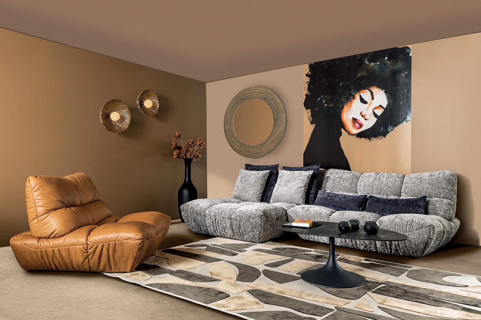 Associez ce canapé avec une longue table basse au forme ovale qui ainsi épousera mieux ces belles courbes rebondies.