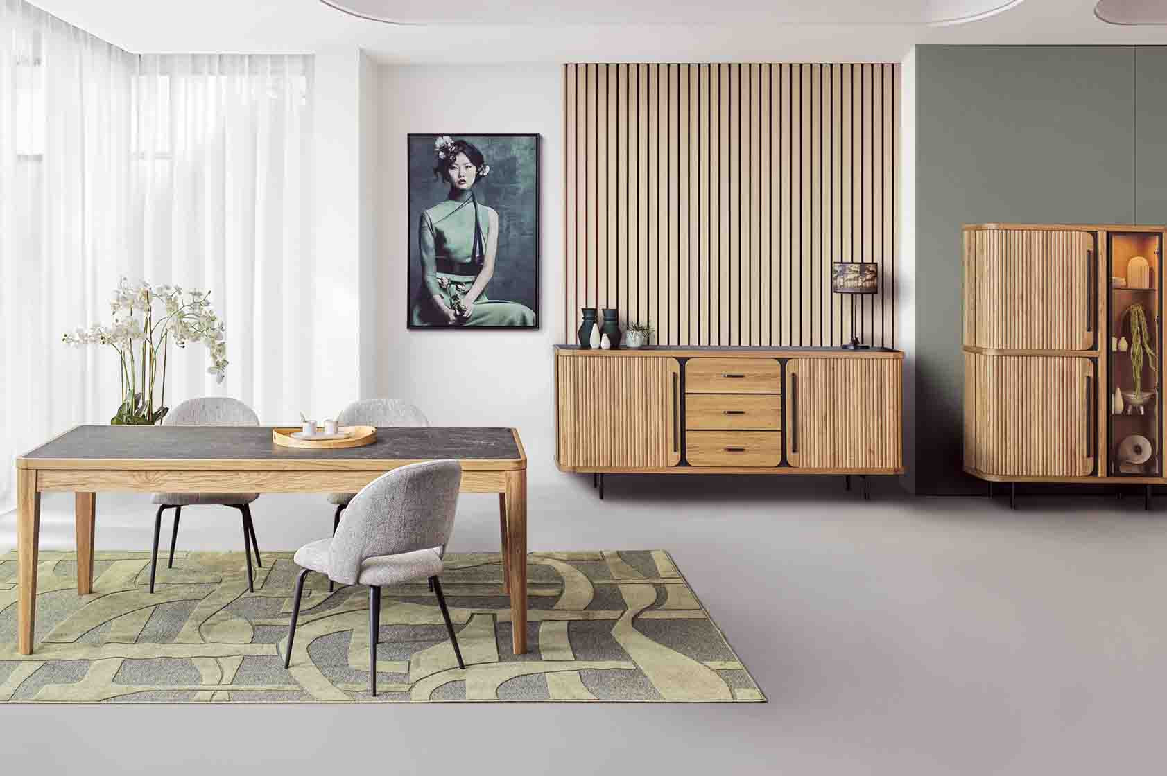 Sa structure en bois massif offre une robustesse à toute épreuve, tandis que l’allonge en bois ajoute une touche de raffinement contemporain. Vous préférez une autre finition ? Cette table modulable existe aussi avec une allonge en céramique. Si vous le souhaitez, vous pouvez aussi compléter cette pièce avec des chaises design assorties au bois.