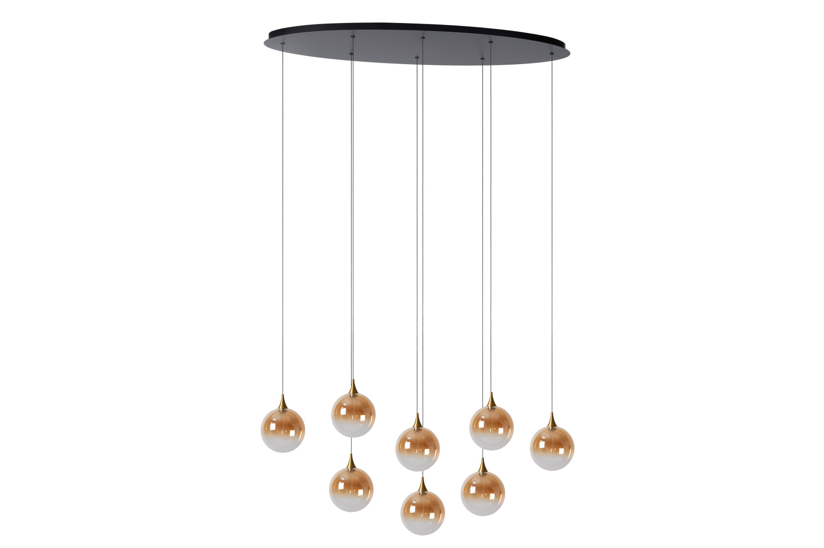Suspension, abat-jour en verre et plaque de montage en métal. 8 ampoules incluses, Douille Led intégré, Puissance 8 x 3,9 W, Voltage 230 V. Lumen 8 x 312 Lm.