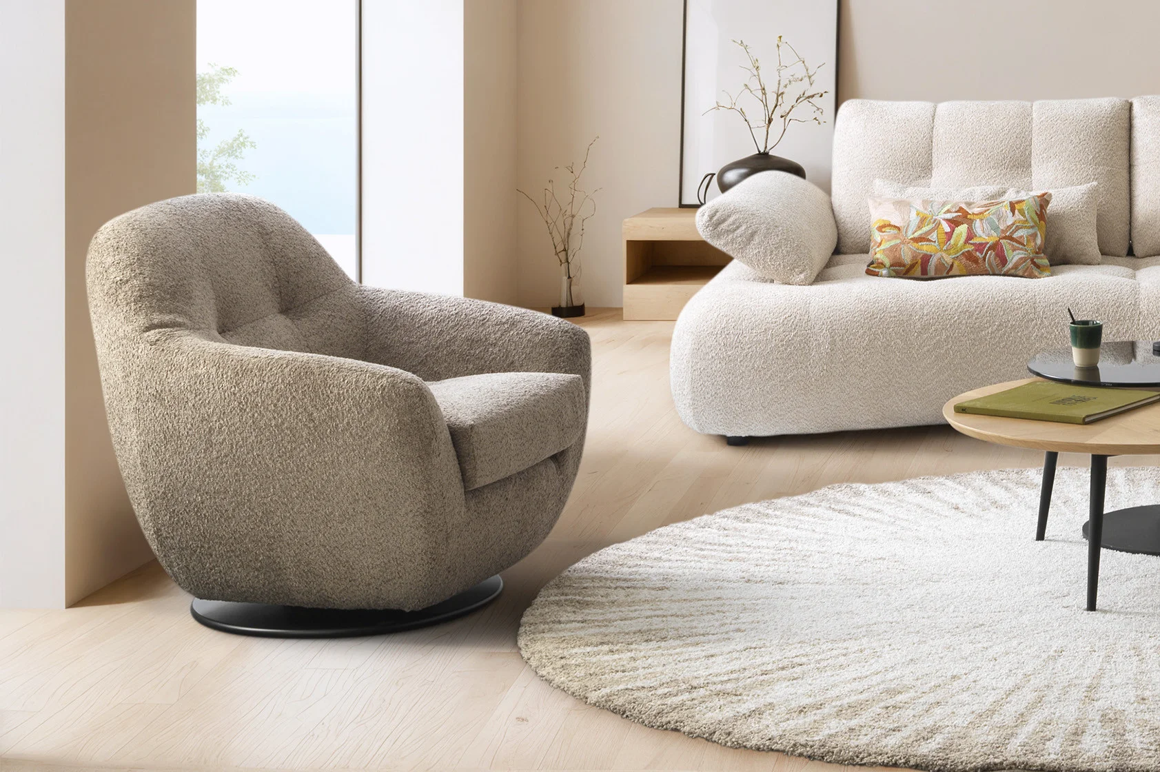 Ce fauteuil pivotant se révèle être également un magnifique objet de décoration. Ses lignes bombées, caractéristiques des meubles de la gamme CLOUD, lui confèrent un design qui invite à la détente.