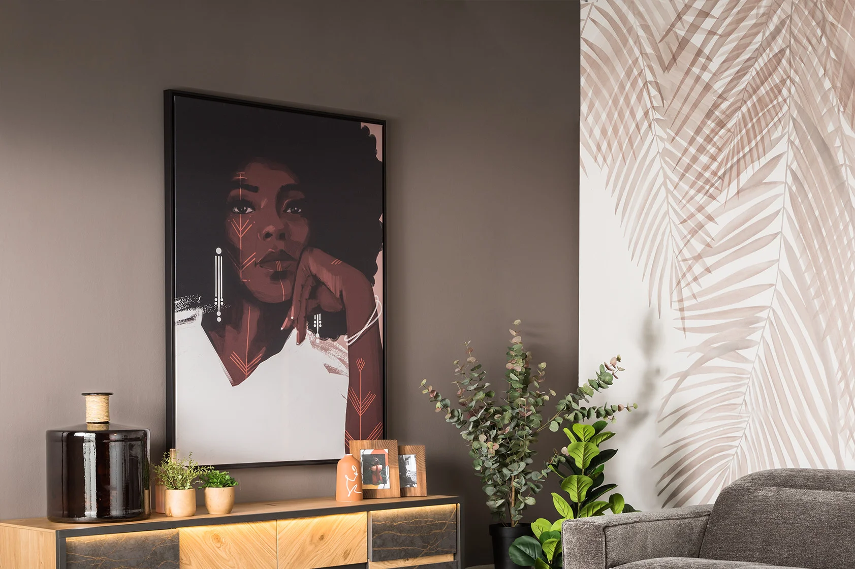Impression haute définition sur toile, encres écologiques, haute résistance aux UV. Toile imprimée tendue sur châssis en bois et caisse américaine en résine.