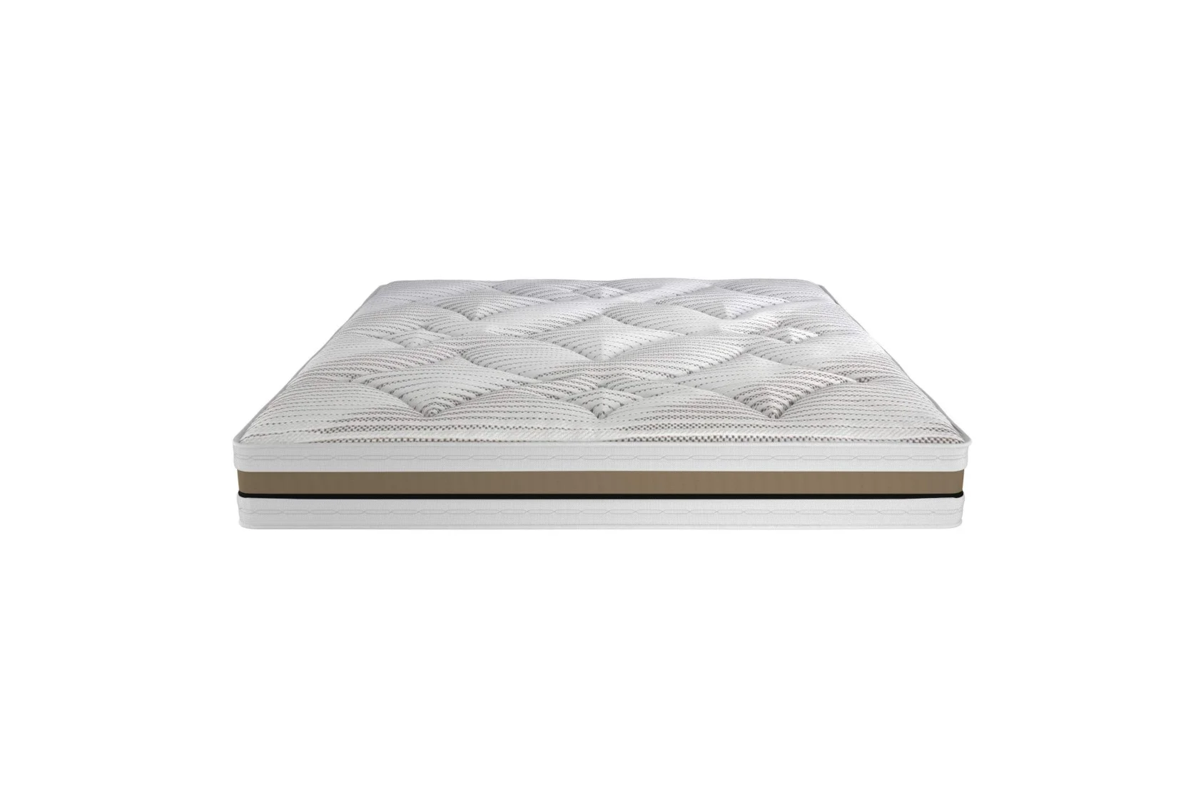 Le matelas Topaze est composé d’une âme 100% Elastorem Soja d’une densité de 60 kg/m3 et d’une épaisseur de 20 cm. L’Elastorem Soja est une technologie alvéolaire haute densité qui offre un accueil optimal et une meilleure portance. Le matelas Topaze est composé d’une structure multicouches, une première pour l’accueil, une seconde pour le soutien, une dernière pour équilibré l’ensemble, offrant une liberté de mouvements inégalée grâce à ses 7 zones de confort. Aération permanente et renforcée par les propriétés thermorégulatrices du soja. D’une épaisseur totale de 26 cm le matelas Topaze est recouvert d’un tricot Bronze composé à 98% de polyester et de 2% de polyamide, bénéficiant d’un traitement Purotex non biocide. Le matelas Topaze possède 2 faces de couchage : la face hiver est composée d’angora pour une douceur et un confort incomparables, la face été est composée de soie qui apporte une sensation de fraîcheur. Pour une meilleure aération le matelas Topaze est équipé d’une platebande 2/3 en Aéroflex (tissu facilitant l’aération) et 1/3 en microfibre taupe. Le matelas Topaze existe en 3 conforts : doux, ferme et extra-ferme, il existe en version fixe ou en version relaxation. Le matelas Topaze est garanti 10 ans. Les produits de la collection exclusive “Ma Literie by monsieur meuble” bénéficient de la certification CTB literie, NF environnement et sont fabriqués en France dans l’usine André Renault située à Saint-Gildas-des-Bois (44).