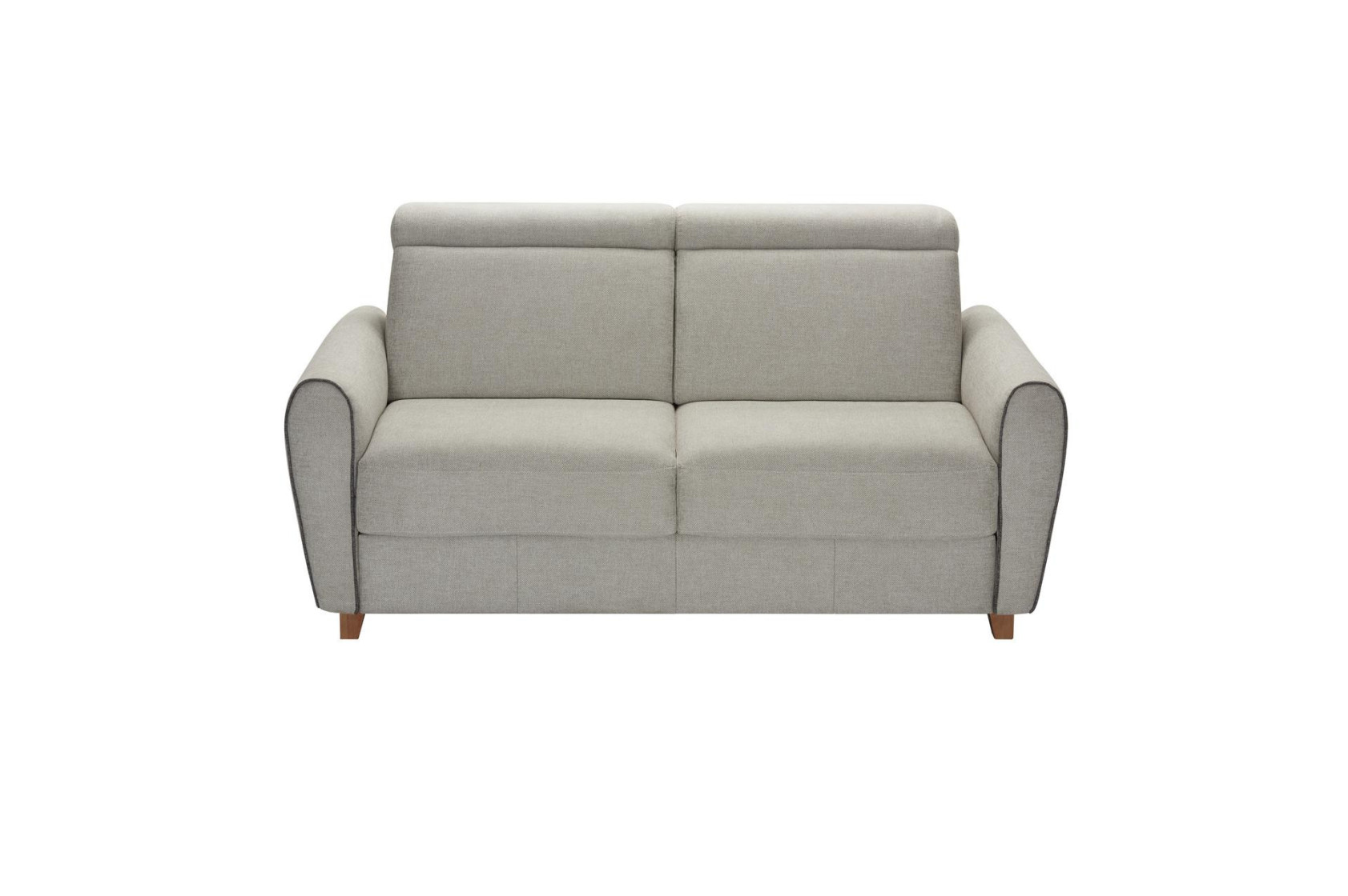 Le canapé convertible GRAZIA est idéal pour recevoir du monde. Optimisez votre espace sans lésiner sur le confort puisqu’il s’utilise en version canapé 3 places ou en version lit d’appoint pour 1 à 2 personnes. Dans le salon ou dans une chambre d’amis, ce canapé-lit s’ouvre facilement par renversement du dossier sans retirer les coussins. Astucieux, son dossier intègre un coffre de rangement. Avec son matelas de 17 cm d’épaisseur, il permet de se détendre confortablement La teinte neutre de son revêtement en tissu et ses pieds en bois lui confèrent un charme certain qui ne dénotera pas avec le reste de votre mobilier. Le petit plus : ses têtières manuelles réglables qui vous permettront de vous relaxer en toute quiétude tout au long de la journée. Fabriqué en Italie, c’est un canapé convertible solide qui tient ses promesses dans la durée avec son sommier grille métallique.