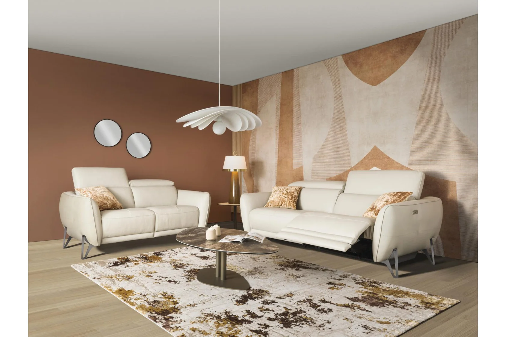 Les canapés et fauteuils de la collection sont équipés de têtières manuelles réglables pour un soutien optimal, tandis que les versions relaxation électrique vous permettent de reposer tête et dos en toute simplicité pour une détente maximale. Avec son design épuré et ses pieds en métal noir ou inox au style moderne, chaque élément de la gamme allie esthétique et fonctionnalité.