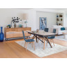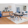 Matière : plateau céramique épaisseur 4 mm sur MDF et allonge en panneaux de particules et MDF plaqué chêne. Structure bois massif et métal, piétement métal et MDF plaqué chêne. Teinte à l'eau, vernis acrylique, métal finition poudre époxy.