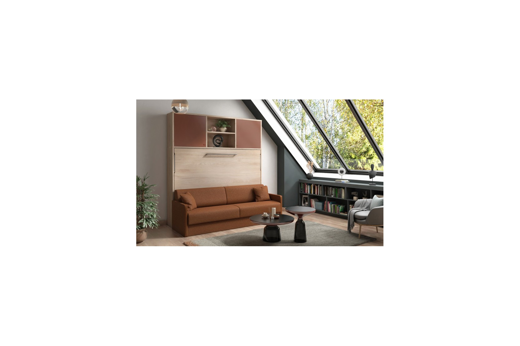 Ce lit escamotable accueille une banquette avec accoudoirs larges ou fins. Avec ses 30 tissus au choix, vous trouverez forcément votre bonheur.