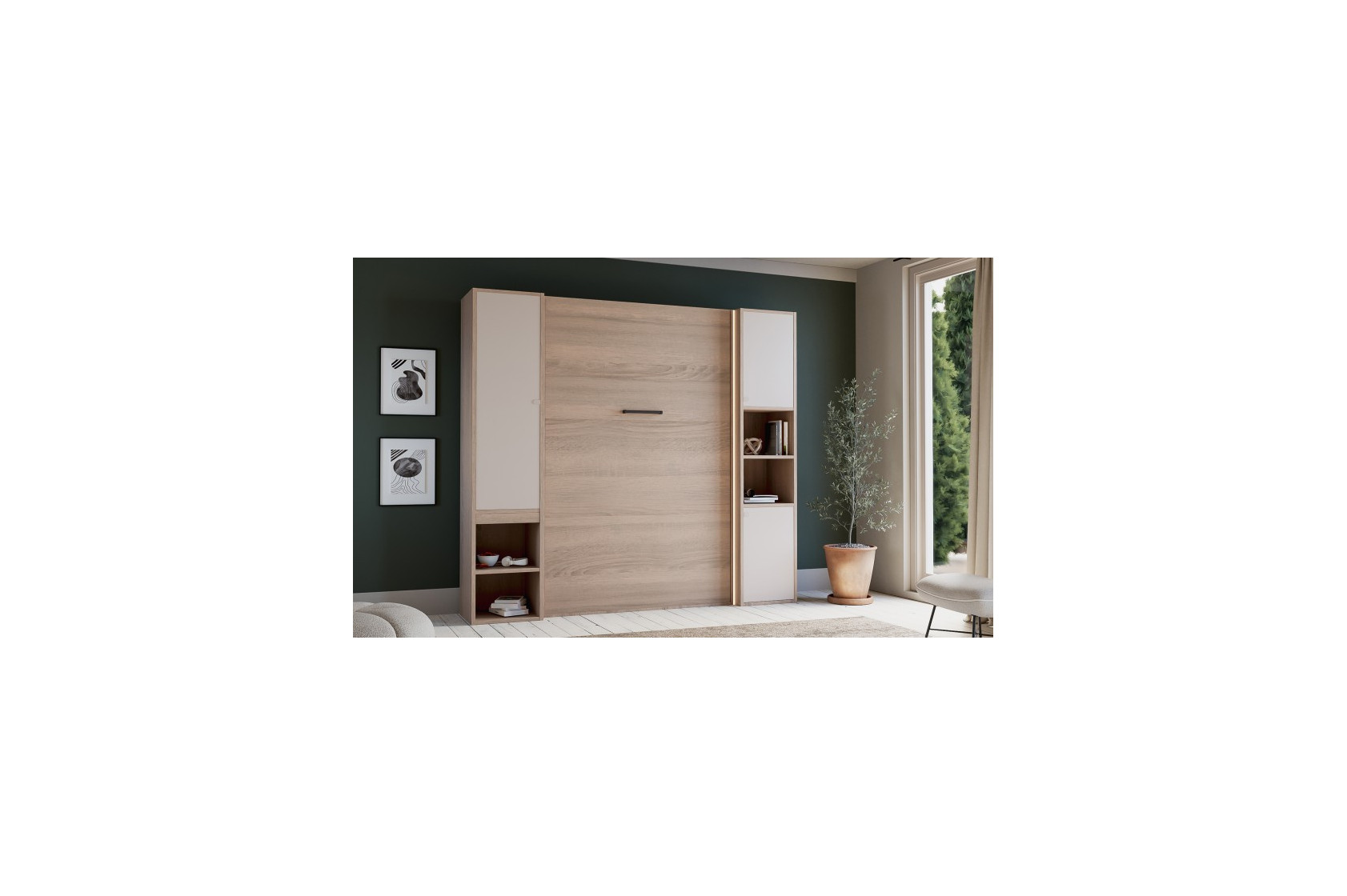 Observation : armoire lit comprenant : armoire lit verticale L140 réf 27210102, colonne 1 porte 1 étagère coulissante 2 niches réf 27110102, colonne 2 portes 2 niches réf 27110202, couchage 140 x 200.
