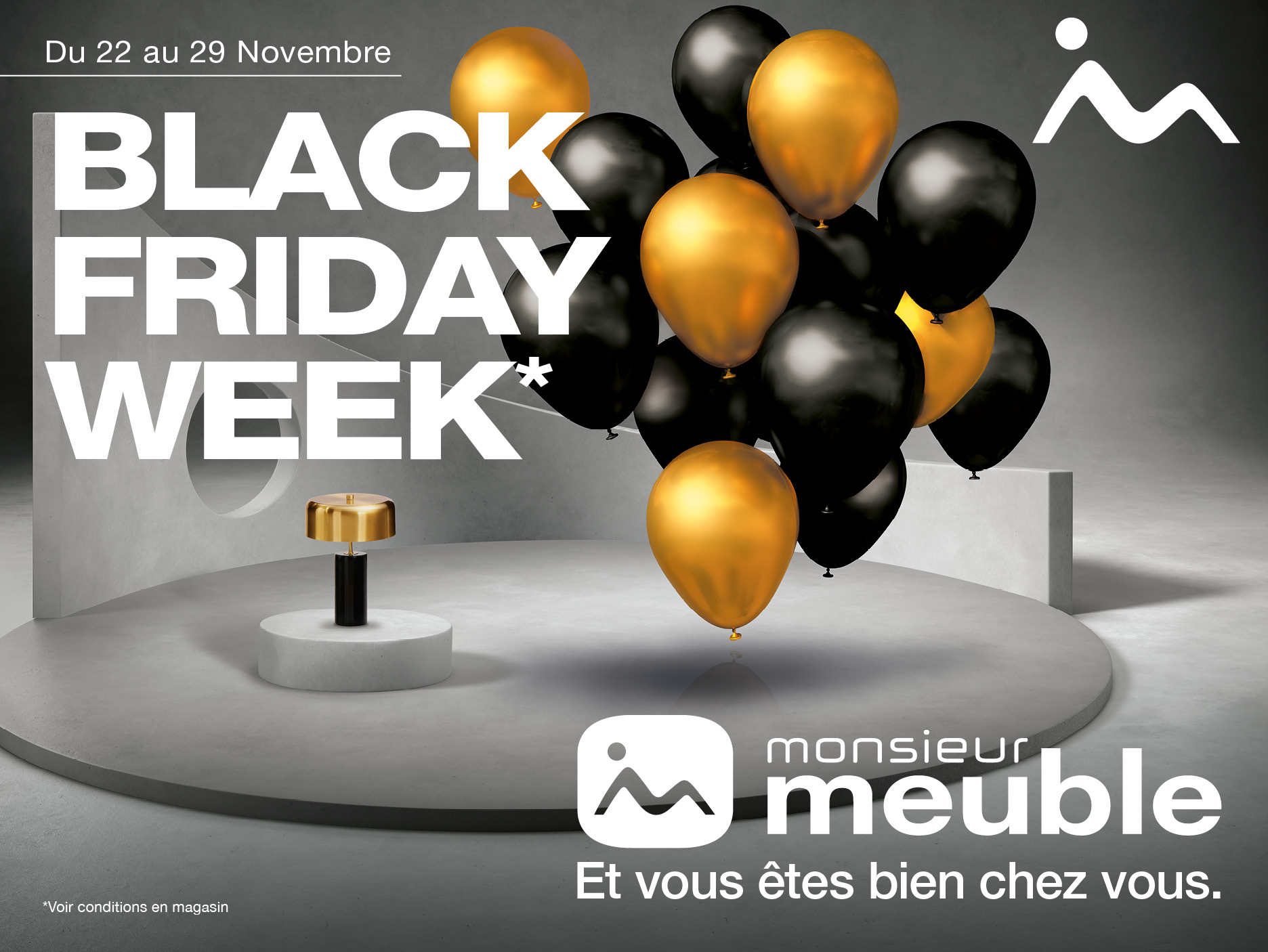 Profitez du Black Friday chez Monsieur Meuble ! A l'occasion du Black Friday Monsieur Meuble organise une Black Friday Week, retrouvez toutes les promotions dans votre Monsieur Meuble !