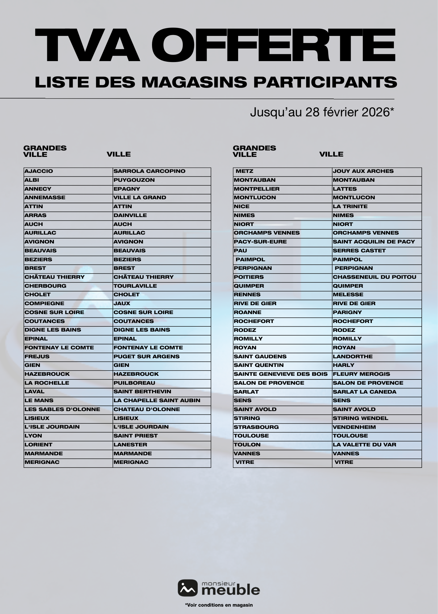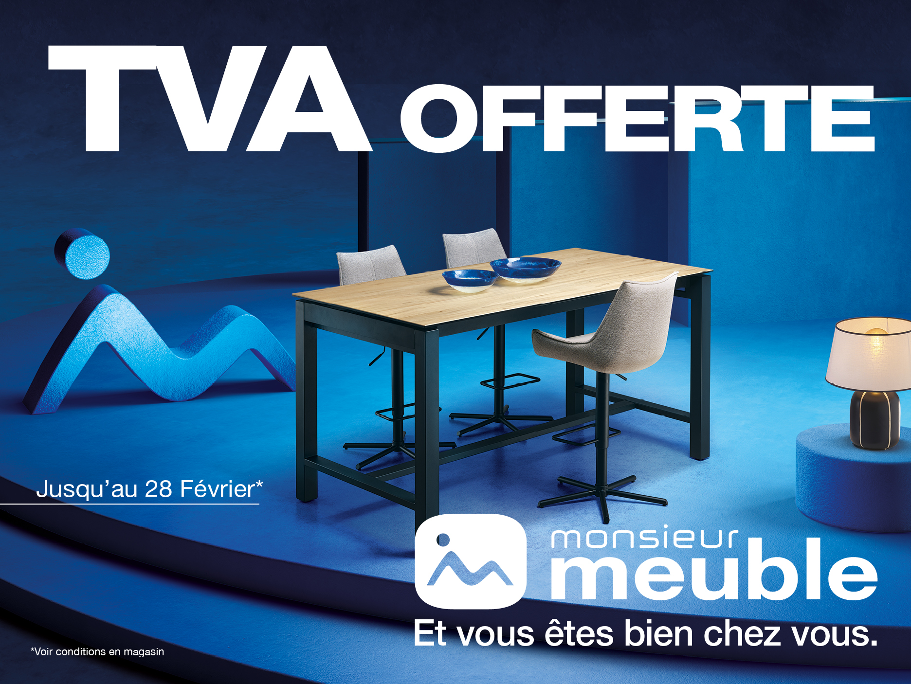 Profitez de la TVA offerte et bénéficiez des meilleures offres pour votre intérieur dans votre magasin Monsieur Meuble.